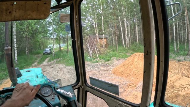 С самого начала на участке была вода. Решение проблемы пришло сразу. выкопали 2 ямы по 2 метра глубиной, вырубили весь #кустарник, выкорчевали пни и приступили к выравниванию участка. В самой мокрой и низкой точке сделали #дренажную яму. В последствии в яму встанут три кольца по 1,5 метра в диаметре. Участок уже сухой. по участку можно ходить и ездить на авто. Раньше застревала техника, например МАЗ гружёный щебнем или ИЖ легковой. Но на всякий случай в месте, где будет домик мы решили снять 20 см плодородного грунта и раскидать его по бокам. Уклон создали в одном месте участка по направлению к дренажной яме. Сейчас засыпаем 30-40 см песка. Песок после дождей сам утрамбуется и посмотрим на наш котлованчик через пару месяцев. Далее будут вкручены винтовые сваи и будем строить деревянный домик. Вопрос с туалетом пока не решен. В #выравнивании #участка нам помогает #трактор #ЮМЗ 6ал