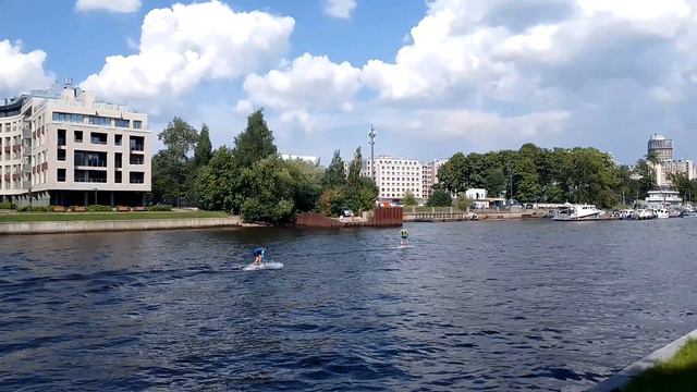 Мы увидели как Сансерферы катались по большой Невке. Сапы имели электродвигатели и всплыли на Большой Невке
