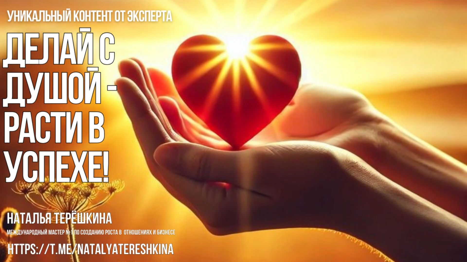Делай с душой - расти в успехе Получить бесплатно диагностику или разбор за подписку на эфире с Натальей Терёшкиной на телеграмм канале https://t.me/natalyatereshkina По раскрытию предназначения написать Наталье https://t.me/Natalilubov777 Онлайн-программы Натальи: 1. Мастер-группа «Точки Роста» (https://natalyatereshkina.ru/tochki_rosta) https://natalyatereshkina.ru/tochki_rosta 2. Онлайн наставничество Ресурсное мышление https://natalyatereshkina.ru/resurs 3. Практика Перерождение - https://natalyatereshkina.ru/pererozdenie 4. Очищение Кармы https://natalyatereshkina.ru/ochishcheniekarmy 5. Перезагрузка Отношений https://natalyatereshkina.ru/perezagruzkaotnosheniy 6. Самоисцеление на уровне ДНК https://natalyatereshkina.ru/samoiscelenie Об Академии счастливой жизни Натальи Терешкиной: https://t.me/natalyatereshkina/2993 https://prichinamira.com Вы можете поддержать проект Мы - причина мира 5534 2000 6070 7825 Песни Натальи Терешкиной: 1. Я причина мира https://rutube.ru/video/577e02d7dd66f62db0397212b058188a/ 2. Принимай в себе любовь https://rutube.ru/video/24fc1b3d1d0250ac8db24bd2b4ec1f01/ 3. Глазами твоей души https://rutube.ru/video/08cb59b7d7d96d700818987bcdec51d4/ 4. Исцелись и живи https://rutube.ru/video/6fa290646d21792c05fcc59cebd720fd/ 5. Мечтай https://rutube.ru/video/25912e01d1e183b768a847c46f61b288/ 6. Встреча с Душой https://rutube.ru/video/49470e42ef4566917a5064624779ae0c/ 7. Дружба с законами https://rutube.ru/video/9922b0244d6c53bc8e48ea34821b07e1/ 8. Гимн Академии счастливой жизни https://rutube.ru/video/b4f1de61bc7f1b678824b144cdb77e2e/ 9. Уходи гордыня https://rutube.ru/video/9ef6d60236975e7963dd97c91c5a2744/ 10. Новый путь https://rutube.ru/video/7ca7c75accd2013273930ca2481a9704/ 11. Верь в себя https://rutube.ru/video/a758589f9ccdcc22e6d432678636ab7e/ 12. Благодарность мужу https://rutube.ru/video/3aeab508b20ea45fc26f44435991e5bc/ 13. Глазами твоей души https://rutube.ru/video/98e68db8b6662ff6c2c97da0fdf85788/ 14. Магнит изобилия https://rutube.ru/video/e07ca0c984ea27e4d8751a07715b0272/ 15. Радуйся жизни https://rutube.ru/video/dd7aa84044842e4045513f871eeeeca5/ 16. Мир и слава https://rutube.ru/video/010ce9ee979b9d610243c4a99137aaeb/ 17. Мышление творца https://rutube.ru/video/69dc2bef59deafd0dfbcb91573aa3e9d/ 18. Баланс https://rutube.ru/video/925d818498bd9bd33afc33fa6e4403cc/ 19. Полет души https://rutube.ru/video/1be3799813a1a1962c79dcd81d3ff2dd/ 20. Любовь мамы https://rutube.ru/video/244910b477ed4c7da3d6de2d15579d80/ 21. Благодарность папе https://rutube.ru/video/8b46bd317253decba3a2a0dfb891648f/ По вопросам: отношения, предназначение/самореализация, психосоматика, пиши https://t.me/natalyatereshkina, здесь вы найдете ответы на любые свои вопросы. Подпишитесь на канал и включите оповещения (жмите на 🔔 под видео), чтобы первыми увидеть моё новое видео. С Любовью, Наталья - Активатор успеха, Наставник-проводник в жизнь мечты! ❤️ Отзывы https://t.me/+DZHeIlxU1fA0NTcy _ Подпишитесь на мои: ютуб канал https://www.youtube.com/@natalyahappylife?sub_confirmation=1 telegram https://t.me/natalyatereshkina instagram https://instagram.com/natalia_myshlenie?igshid=MzRlODBiNWFlZA== Вконтакте https://vk.com/nataliatereshkina777 Благодарю за комментарии и лайки ❤️🙏 До встречи! #натальятерешкина #отношения #осознанность #предназначение #саморазвитие #самореализация #психосоматика #медитация #здоровье