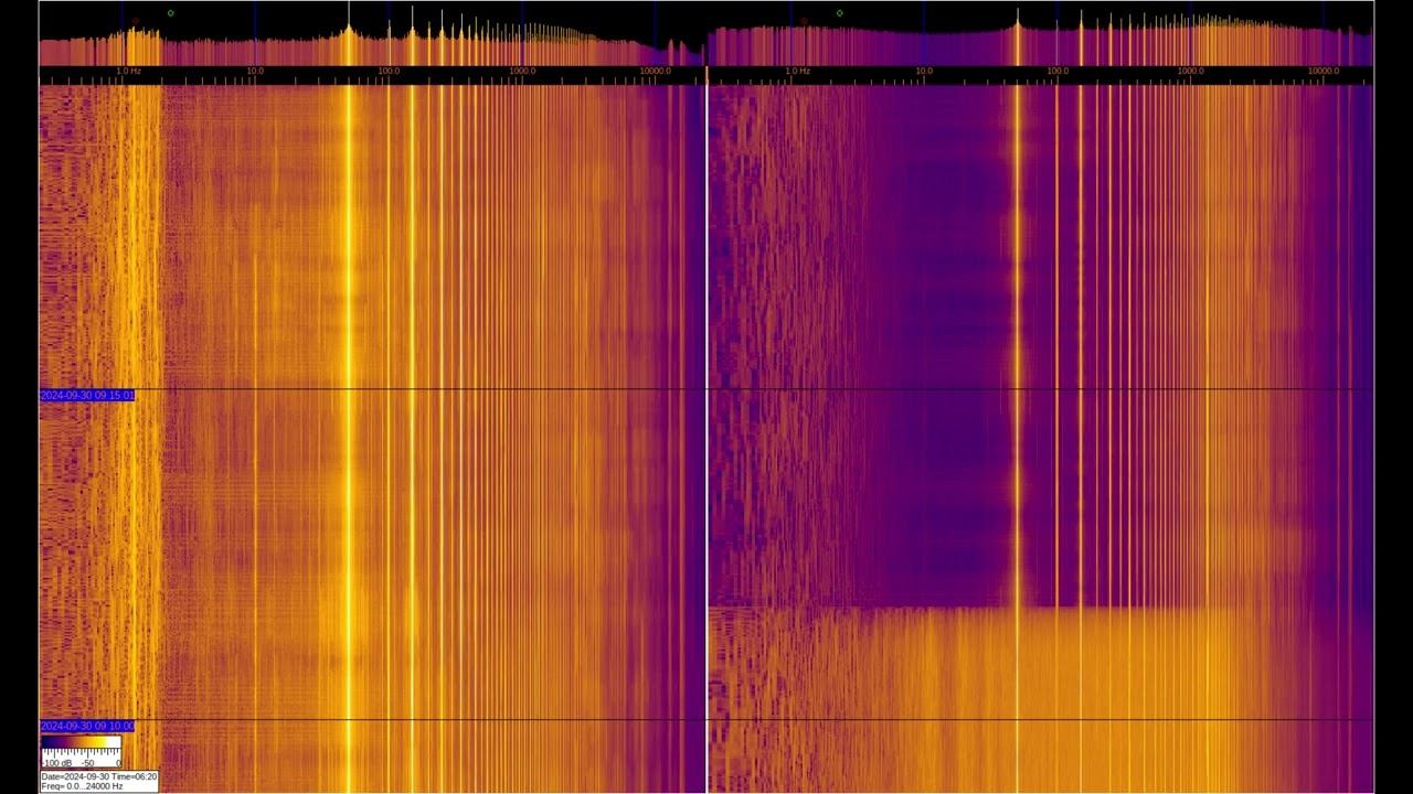 The left and right signals are taken from inductive sensors with ferromagnetic elements, but the left one is additionally connected to grounding on 2 stainless steel pins buried 1 m and spaced 1 m apart. You can see a large number of harmonics from the power supply and various artificial signals. Of interest are signals at frequencies below 50 Hz, where you can observe the operation of specialized equipment and communication signals of submarines and underground objects. Separately, it is worth considering signals in the region of 1-3 Hz on the left spectrum, which relate to the geomagnetic background, which is modulated by solar activity, They can be viewed in more detail in the video called “Signals from the Earth,” which are in the playlists below. The sound in the video is recorded in real time - a signal from sensors. О ПРОИСХОЖДЕНИИ ЧАСТОТНОЙ МОДУЛЯЦИИ СЕРПЕНТИННОЙ ЭМИССИИ https://youtu.be/bwWHggY1IVU?si=xAX1diRKI9MxQJ88&t=1740 Previous monitoring is in playlists: EMF monitor https://youtube.com/playlist?list=PLiRg2YCbXcwn41BHqADKVBep_TgVq6XUN Очень Низкая Частота ~ Very Low Frequency https://youtube.com/playlist?list=PLiRg2YCbXcwnp5DxM4PnSs7k_Rnypaqek SIGNALS IN THE GROUND https://youtube.com/playlist?list=PLiRg2YCbXcwl6f3Bf5arHbGSOCNE5U71O поддержать канал: 8-999-654-93-44