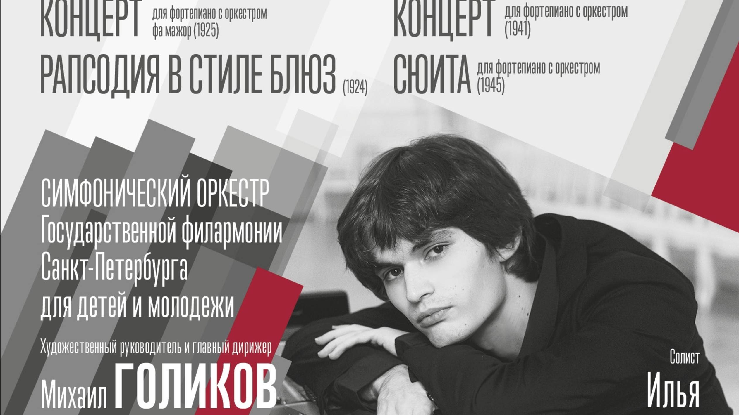 Филармоническое общество Санкт-Петербурга 10 сентября 2025 года Санкт-Петербургская академическая филармония им. Д.Д. Шостаковича БОЛЬШОЙ ЗАЛ ГЕРШВИН И ЦФАСМАН - ДВА ГЕНИЯ ДЖАЗА Симфонический оркестр Санкт-Петербургской государственной филармонии для детей и молодежи Художественный руководитель и главный дирижер Михаил ГОЛИКОВ Солист – Илья ПАПОЯН (фортепиано) Для сотрудничества по спец.проектам: Booking & PR: +79852267676, pr@tabriz.ru Друзья, так же подписывайтесь на официальные группы в других социальных сетях: Личная страница ВКонтакте: https://vk.com/ilia.papoian.official Официальная группа ВКонтакте: https://vk.com/ilia.papoian_official.group Официальная группа на Facebook: https://www.facebook.com/groups/ilia.papoian.official.group/?notif_id=1720943556405679¬if_t=groups_member_joined&ref=notif Официальная страница в Instagram: https://www.instagram.com/ilia.papoian.official?igsh=MXRzbWJmOWdmNGY0 Официальный канал на YouTube: https://www.youtube.com/@juliaartur1