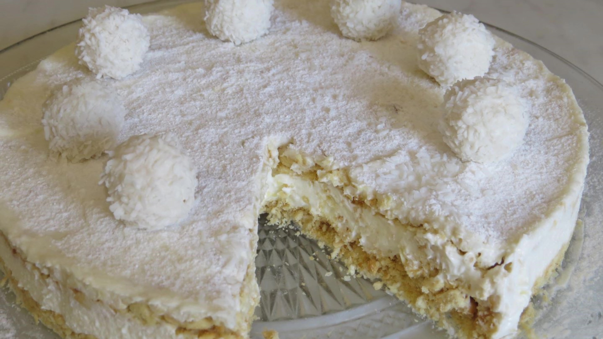 Торт РАФАЭЛЛО Без ВЫПЕЧКИ. Крем Просто ВОСТОРГ! Вкуснее чем ПЛОМБИР. RAFFAELLO Cake. Очень простой рецепт. Торт ПЛОМБИР БЕЗ ДУХОВКИ на ПРАЗДНИК: https://youtu.be/j-yePkWXWxU ПЛ ТОРТЫ Без ДУХОВКИ: https://www.youtube.com/playlist?list=PLVVtY71q45QOBZfDjrgOEeSgiPQeEGmKl ПЛ ТОРТЫ: https://www.youtube.com/playlist?list=PLVVtY71q45QPkWmZraNVEjbo0Q2LNzGim ПЛ Десерты: https://www.youtube.com/playlist?list=PLVVtY71q45QOecZTceEbfY7fII7bbrDEy ПОПУЛЯРНЫЕ ТОРТЫ: https://www.youtube.com/playlist?list=PLVVtY71q45QOpLriFU4qddzvugTVVu74e ЛУЧШИЕ ДОМАШНИЕ ТОРТЫ: https://www.youtube.com/playlist?list=PLVVtY71q45QPJ06Xd8hl3J5GP0Vvvb3Z6 НОВОГОДНИЕ ТОРТЫ: https://www.youtube.com/playlist?list=PLVVtY71q45QP-9fK6txBZEdMe4e0P4OBZ Крем очень вкусный: Молоко - 500 гр Сахар - 100 гр Ванильный сахар - 8 гр Мука - 2 столовые ложки Крахмал - 2 столовые ложки Масло сливочное - 180 гр Печенье галетное - 200 гр Шоколад белый - 100 гр Масло слив - 50 гр