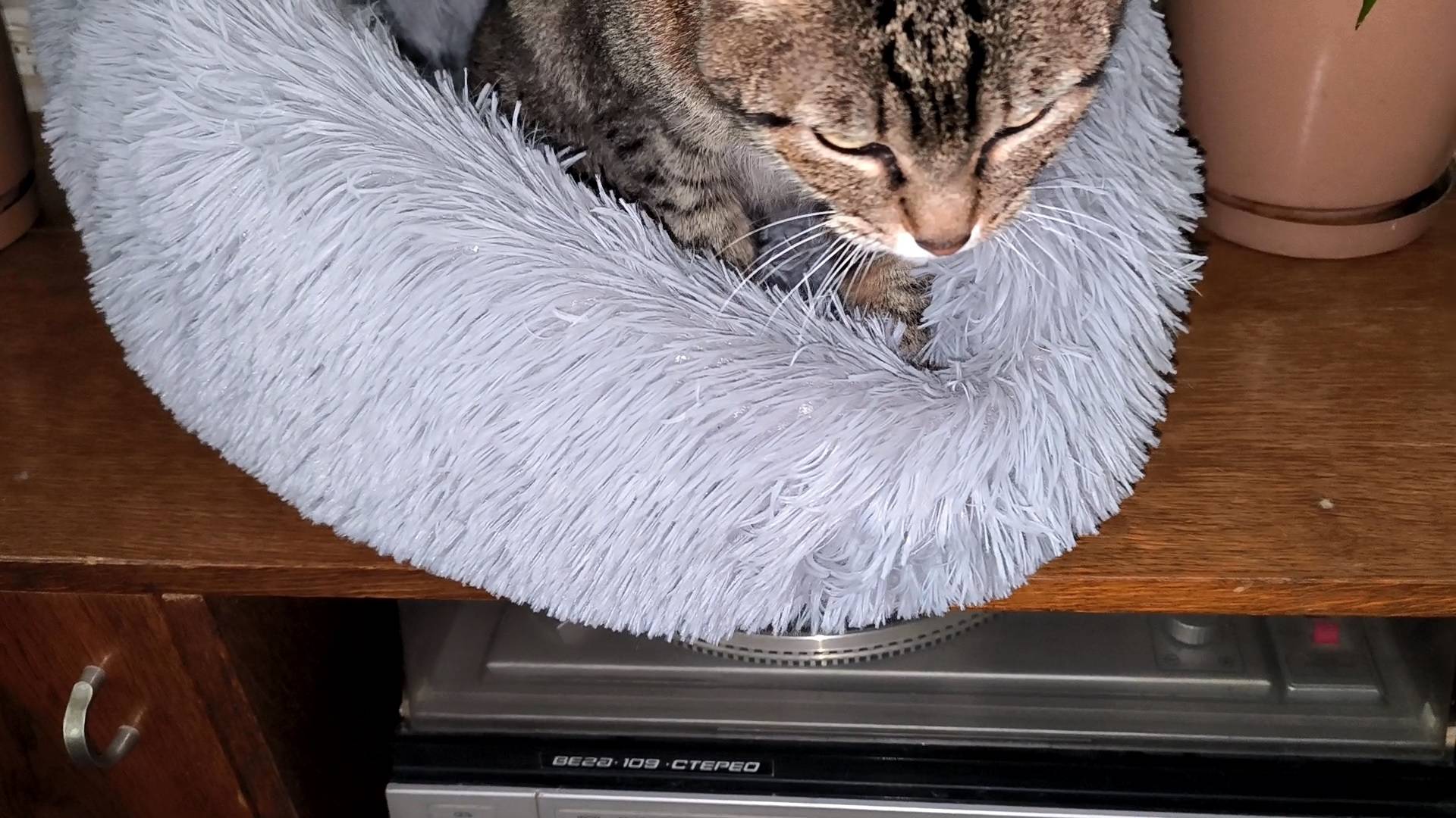 Это был первый раз, когда мы увидели, что кошка мнёт лапками свою лежанку.