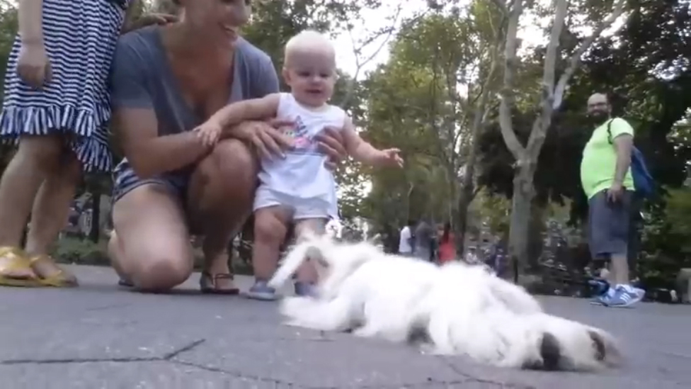 Очень забавная собачка на ниточках гуляет по парку. #прикол #собака #парк #кукловод