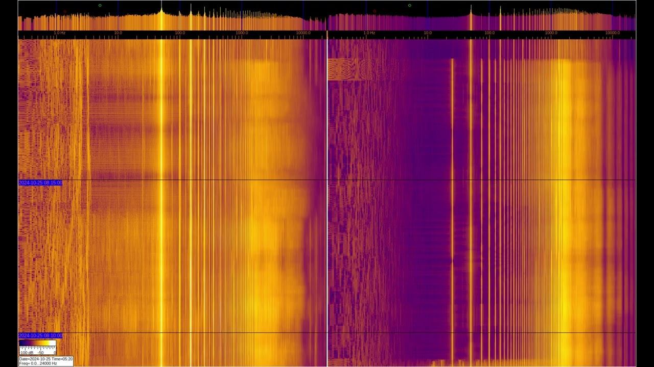 The left and right signals are taken from inductive sensors with ferromagnetic elements, but the left one is additionally connected to grounding on 2 stainless steel pins buried 1 m and spaced 1 m apart. You can see a large number of harmonics from the power supply and various artificial signals. Of interest are signals at frequencies below 50 Hz, where you can observe the operation of specialized equipment and communication signals of submarines and underground objects. Separately, it is worth considering signals in the region of 1-3 Hz on the left spectrum, which relate to the geomagnetic background, which is modulated by solar activity, They can be viewed in more detail in the video called “Signals from the Earth,” which are in the playlists below. The sound in the video is recorded in real time - a signal from sensors. О ПРОИСХОЖДЕНИИ ЧАСТОТНОЙ МОДУЛЯЦИИ СЕРПЕНТИННОЙ ЭМИССИИ https://youtu.be/bwWHggY1IVU?si=xAX1diRKI9MxQJ88&t=1740 Previous monitoring is in playlists: EMF monitor https://youtube.com/playlist?list=PLiRg2YCbXcwn41BHqADKVBep_TgVq6XUN Очень Низкая Частота ~ Very Low Frequency https://youtube.com/playlist?list=PLiRg2YCbXcwnp5DxM4PnSs7k_Rnypaqek SIGNALS IN THE GROUND https://youtube.com/playlist?list=PLiRg2YCbXcwl6f3Bf5arHbGSOCNE5U71O поддержать канал: 8-999-654-93-44
