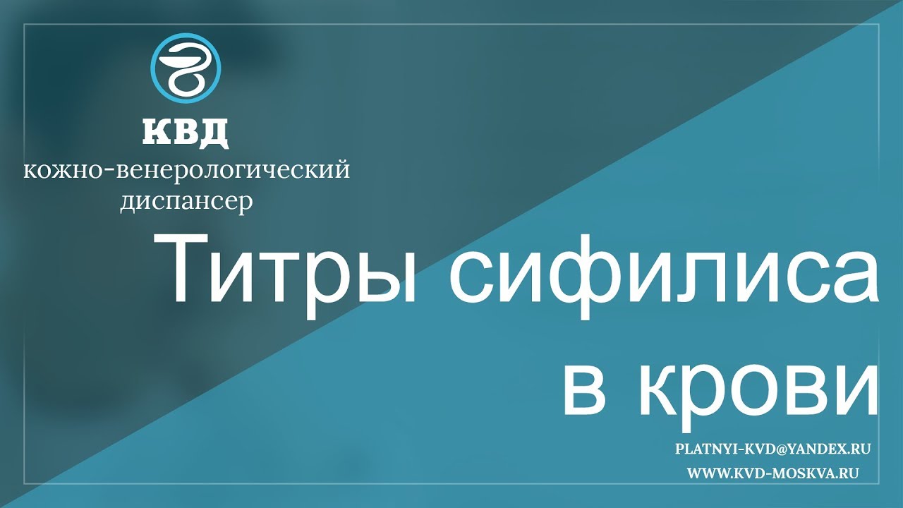 Титры сифилиса в крови обозначают концентрацию антител, белковых веществ, образующиеся в ответ на проникновение в организм возбудителя инфекции. Чем их больше, тем выше титр иммуноглобулинов в сыворотке крови. Подробнее - https://kvd-moskva.ru/titry-sifilisa/ Для подробной консультации по этому вопросу, обращайтесь в платный центр КВД-Москва. Наши телефоны: 8 (495) 642-30-37, 8 (495) 532-66-57 Наш e-mail: platnyi-kvd@yandex.ru Наш сайт: http://kvd-moskva.ru