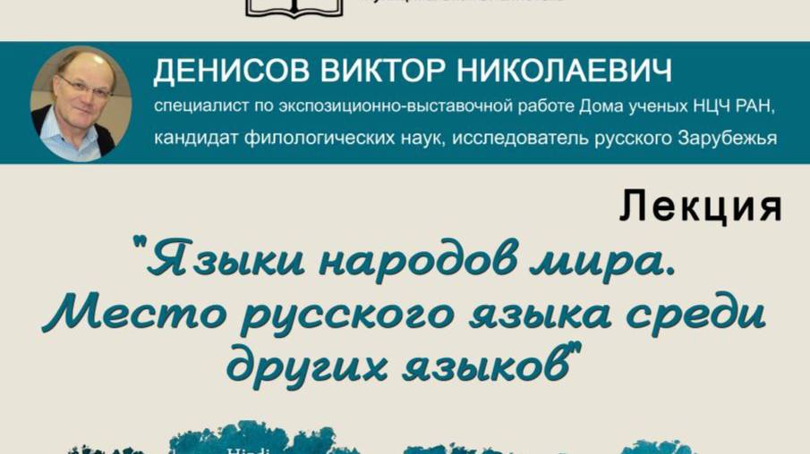 Какое место русский язык занимает в мире, какова его значимость в настоящее время среди других ведущих языков мира? Обо всем этом Вам расскажет кандидат филологических наук, сотрудник Дома ученых и НЦЧ ИФТТ РАН Виктор Николаевич Денисов. Кроме того, вы получите занимательную информацию о ведущих языковых семьях, их происхождении и ареале распространения, а также об алфавитах, которые используют в настоящее время наиболее распространенные языки мира. Лектор также познакомит вас с особенностями китайского языка, использующего иероглифы, и нюансами его звукового строя. В конце лекции вам будет предложена занимательная викторина: «Знаете ли Вы свой родной язык?»