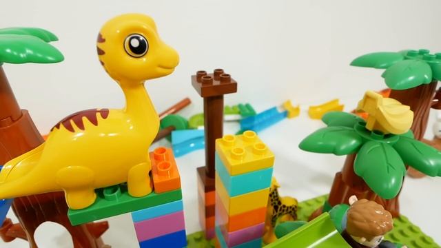 Увлекательная горка из ЛЕГО блоков ☆ Marble Run ASMR - ASMR Забавные динозавры и «качели»