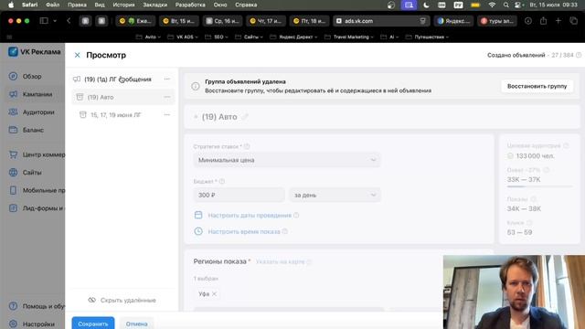 Аудит рекламой кампании VK ADS для туристчиеской кампании