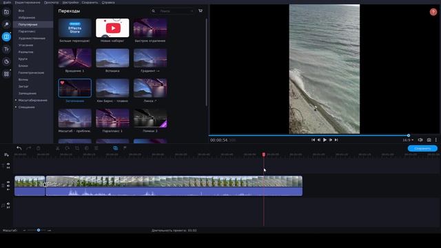 Создание переходов, используем мастер переходов в Movavi. Tech Studio Sensei
