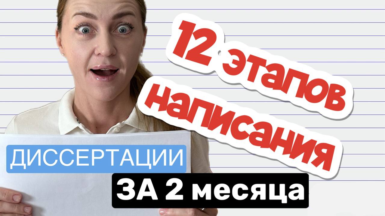 В этом видео, я рассказываю про 12 основных этапов написания любой диссертации (магистерской, кандидатской, докторской). Подробный разбор каждого этапа ждите в следующих видео. Подписывайся, чтобы не пропустить! Забирай полезный материал в моем бесплатном Telegram канале https://t.me/dissertaciya_malinovich Как я могу помочь вам написать вашу диссертацию быстро и легко (на сколько это возможно ?): 1. Если вы пишете работу самостоятельно, но у вас возникают сложности или ваш научный руководитель вам совсем не помогает - я могу стать вашим коммерческим научным руководителем по написанию диссертации. Форматы работы: - Консультация на любом этапе - разберем все нюансы и сложности по точечному запросу. Подойдет для тех, кто только начинает писать работу или уже пишет, но застопорился на определенном этапе. - Сопровождение в написании работы от А до Я - вместе со мной вы пройдете все сложные этапы, разберетесь во всех нюансах вашей работы и дойдете до заветной защиты диссертации. Подойдет для тех, кто не хочет терять время и нервы, а идти по шагам без лишних действий с постоянной поддержкой специалиста. 2. Если у вас поджимают сроки, а написать диссертацию нужно срочно - я могу написать работу полностью за вас. Гарантировано напишу диссертацию за 1 месяц. - Статья РИНЦ, ВАК, SCOPUS (Q1,Q2) - Магистерская диссертация - Кандидатская диссертация - Докторская диссертация - Монография - Автореферат - Презентация и речь Стоимость консультаций и услуг можно уточнить в любом мессенджере или соц.сетях: WhatsApp https://api.whatsapp.com/send?phone=79261680223 Telegram https://t.me/dissertaciya_malinovich VK https://vk.com/zachet11 Instagram https://instagram.com/dissertaciya_malinovich *Instagram принадлежит компании "Meta Platforms" признана экстремистской организацией в РФ и деятельность которой запрещена. Clarity by tubebackr https://soundcloud.com/tubebackr Creative Commons — Attribution-NoDerivs 3.0 Unported — CC BY-ND 3.0 Free Download / Stream: https://bit.ly/3O31Xe9 Music promoted by Audio Library https://bit.ly/45WkM8Z