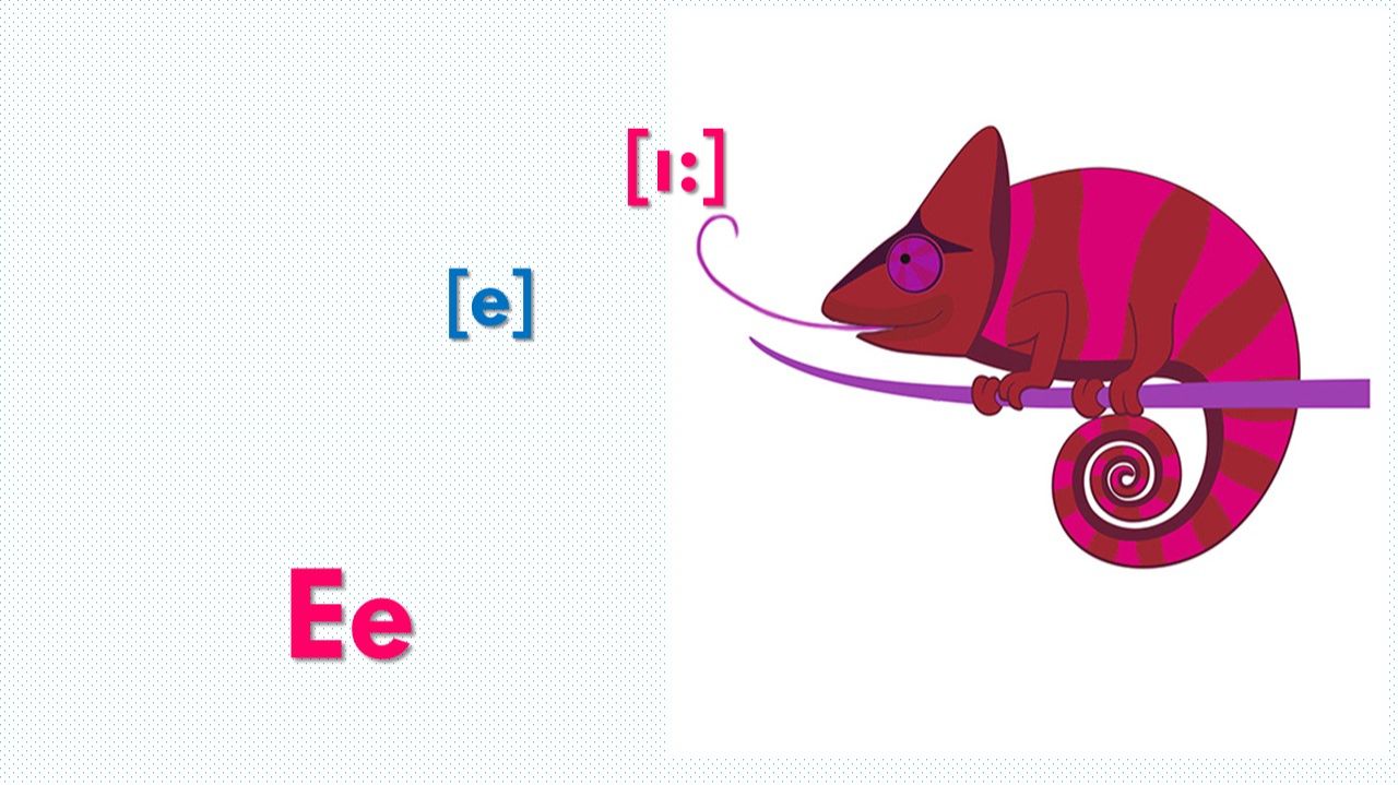 Е е [ɪ:]- He feeds his geese with sweet beans and peas. Он кормит своих гусей сладкими бобами и горохом. [e]- Several men went to a bear's den but met a red hen Несколько мужчин отправились в медвежью берлогу, но встретили красную курицу.