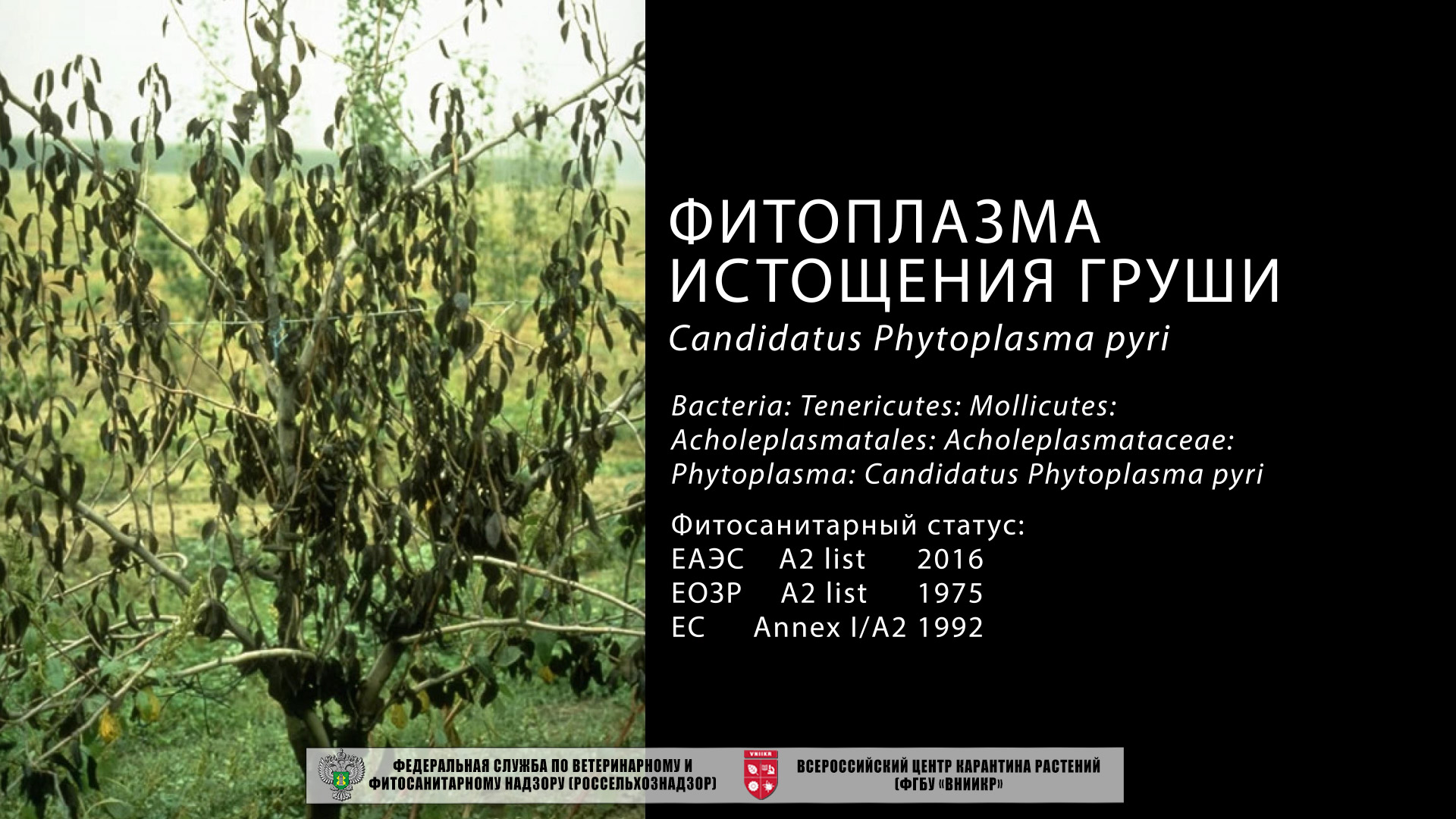 Candidatus Phytoplasma pyri – возбудитель истощения груши. Основное растение-хозяин – груша домашняя. Поражаются также: груша грушелистная, берёзолистная, китайская, уссурийская и айва.
