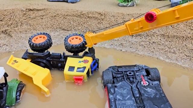 кран спасает грузовик, трактор