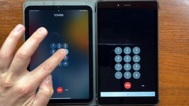 Apple iPad Mini 2021 incoming call from your iPhone vs Samsung Galaxy Tab A 8.0 2019 incoming call with iCallDialer app. iPadOS 16 vs Android 11.