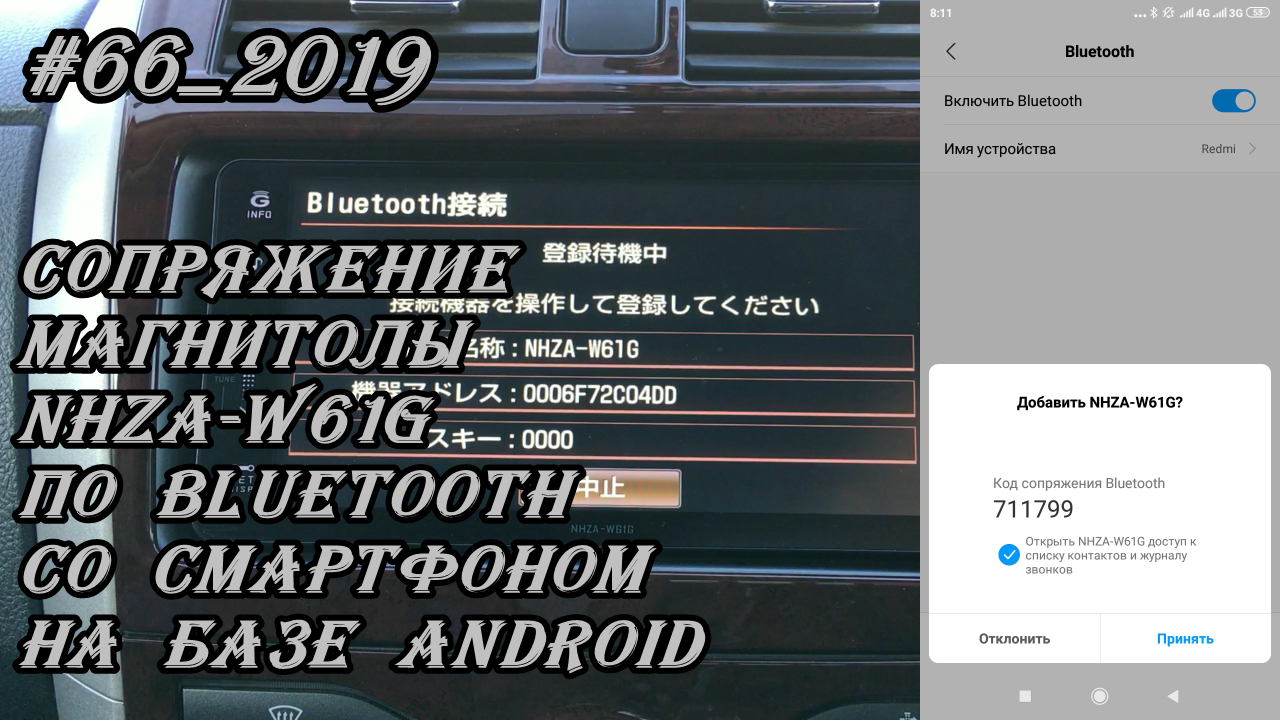 #66_2019 NHZA-W61G сопряжение магнитолы по Bluetooth со смартфоном на базе Android