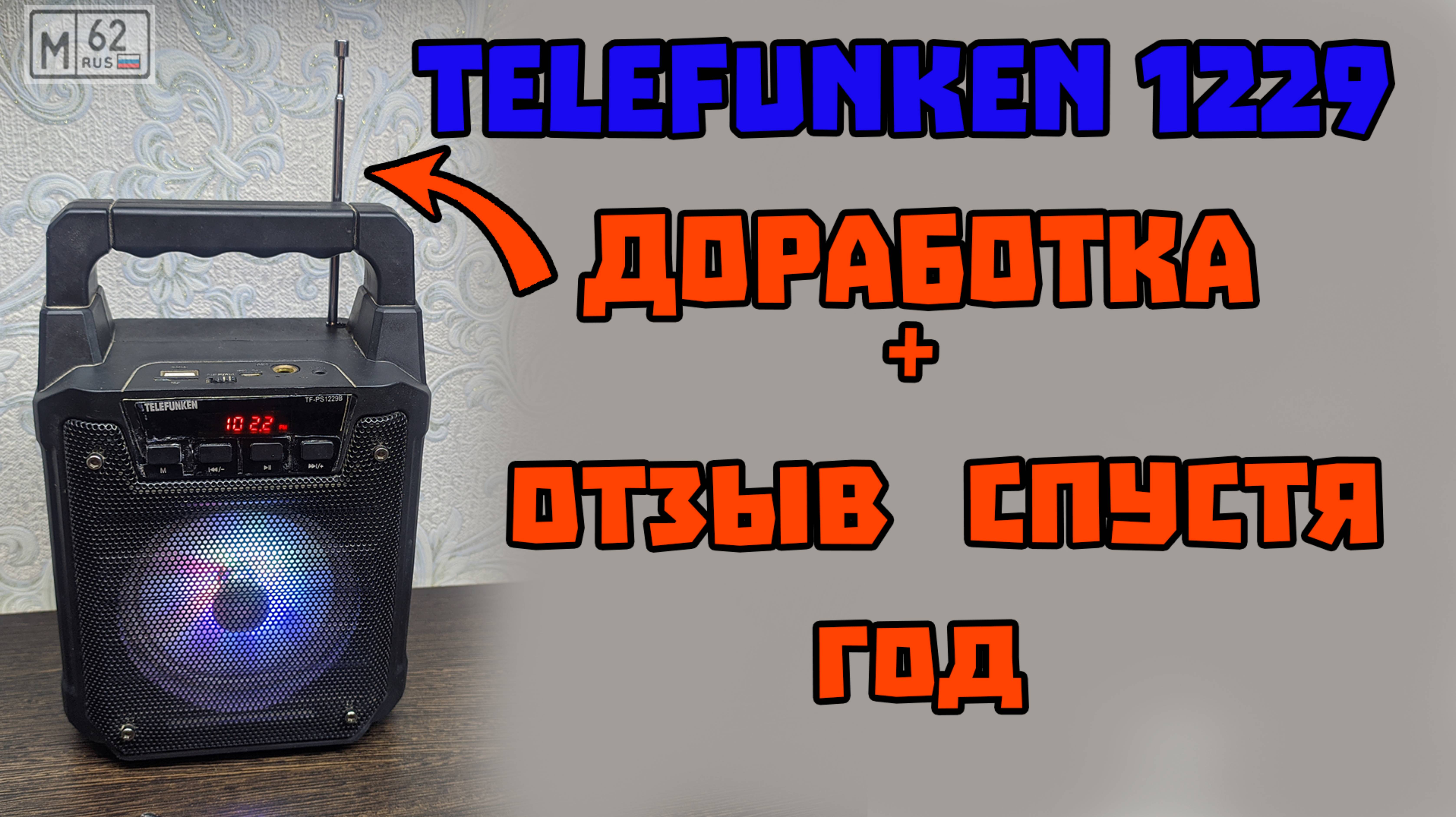 Отзыв о колонке Telefunken 1229 спустя год, доработка антенны для лучшего приема сигнала радио. Минусы обнаруженные в течении года. Основной обзор с плюсами и минусами, а также настройка колонки: https://youtu.be/-YHpkXQeZLQ Ссылка на продавца: https://wildberries.ru/catalog/17430142/detail.aspx ********************************************* Мой телеграмм канал: https://t.me/m62_video Яндекс Дзен: https://dzen.ru/m62 Rutube: https://rutube.ru/channel/23792118/ Для связи со мной можно использовать телеграмм: t.me/M62_official Также можно писать на почту: miha007xxx@mail.ru