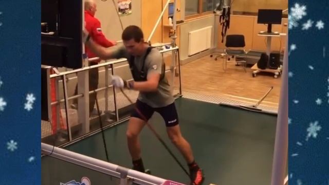 Александр Большунов потренировался в РАМЗАУ на тредбане