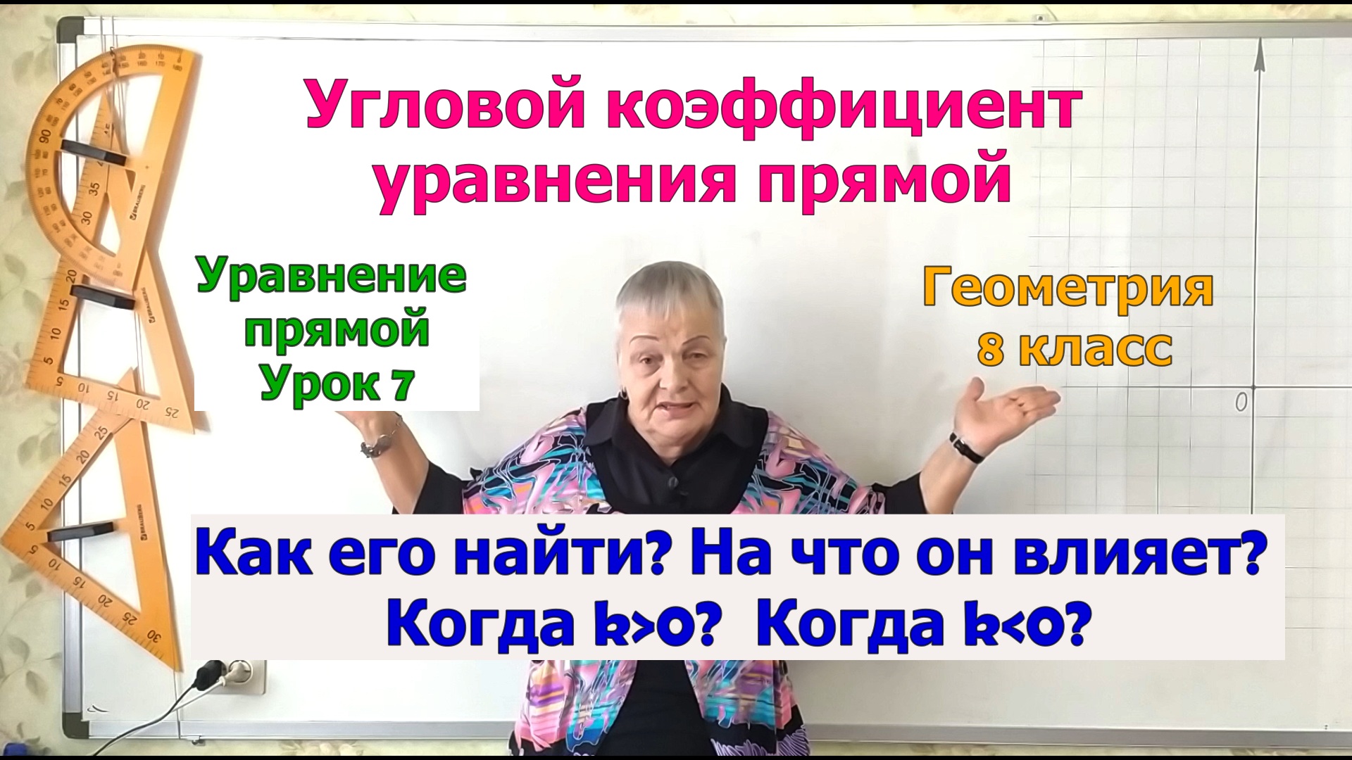 Геометрия 8-9 класс. Как найти угловой коэффициент прямой, изображенной на рисунке или зная уравнение прямой, или зная две точки с заданными координатами, через которые эта прямая проходит? Сегодня мы ответим на эти вопросы. А также поясним Вам, на что влияет угловой коэффициент прямой, и почему он так называется. Обратим Ваше внимание на то, что тангенс угла может быть и положительным, и отрицательным. Знак тангенса зависит от величины угла. Подробный план урока и ссылки на предыдущие уроки Вы можете найти в описании под видео. 00:00 Начало видео. 00:50 Задача а. 02:48 Задача б. 04:38 Задача в1. 08:32 Задача в2. 11:13 Вывод. Угловой коэффициент в уравнении прямой. Геометрический смысл углового коэффициента. Урок 6. Геометрия 8 класс. https://rutube.ru/video/6c1aecf7ba0a82b4e74c71380e9e78e2/ #геометрия8класс #уравнениепрямой #угловойкоэффициентпрямой8класс #угловойкоэффициентпрямойпроходящейчерезточки #найдитеугловойкоэффициентпрямойпроходящей #найтиугловойкоэффициентпрямойзаданнойуравнением #какнайтиугловойкоэффициентпрямой #найдитеугловойкоэффициентпрямойзаданнойграфически #найдитеугловойкоэффициентпрямойизображеннойнарисунке #тангенсострогоуглаположительный #тангенступогоуглаотрицательный #начтовлияетугловойкоэффициент #МатематикаОтБаканчиковой геометрия 8 класс, уравнение прямой, угловой коэффициент прямой 8 класс, угловой коэффициент прямой проходящей через точки, найдите угловой коэффициент прямой проходящей, найти угловой коэффициент прямой заданной уравнением, как найти угловой коэффициент прямой, найдите угловой коэффициент прямой заданной графически, найдите угловой коэффициент прямой изображенной на рисунке, на что влияет угловой коэффициент, тангенс острого угла положительный, тангенс тупого угла отрицательный