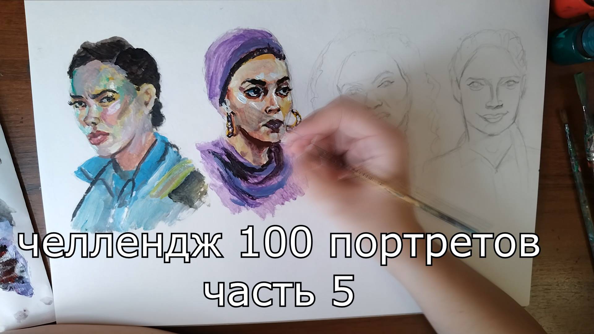 100 портретов челлендж - процесс создания портретов акрилом - часть 5