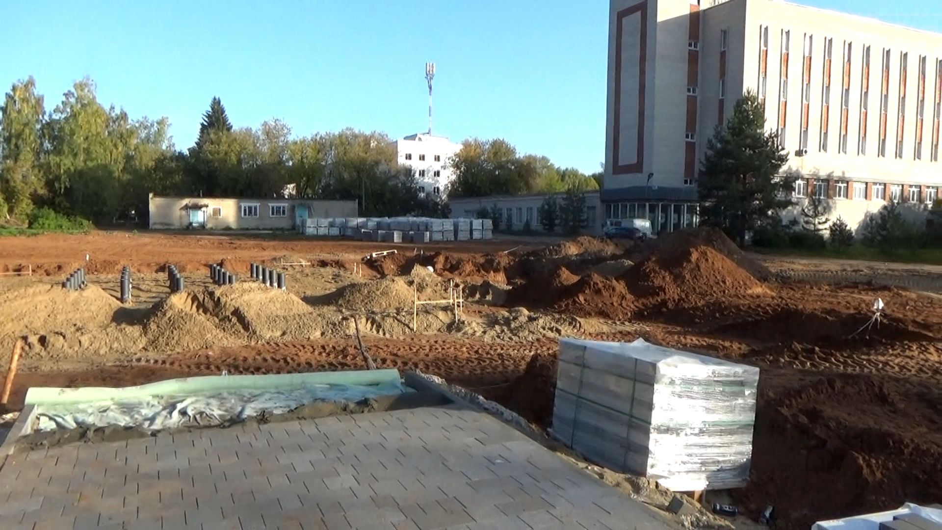 Строительство сквера в городе Вязники у Комсомольской улицы. Съемка 14.09.2023