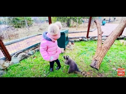Ангелина пришла проведать своих друзей ЕНОТА и КОТЯТ! Все рады друг другу)
