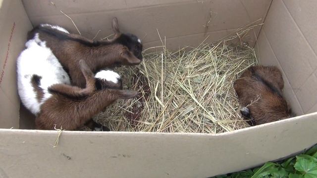 Окот камерунской козы. Первое кормление малышей