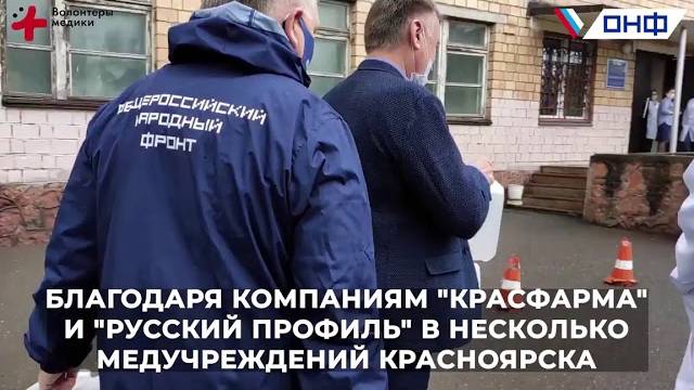 Компания Русский Профиль в рамках акции #МыВместе передала в разные медицинские учреждения Красноярска 100 литров антисептика, 3000 масок и специально изготовленные пороги с надписями "Соблюдайте дистанцию". "Очень важно обеспечить безопасность врачей, которые сейчас находятся на передовой в борьбе с коронавирусом. Мы благодарны предприятиям за оказываемую медучреждениям региона и нуждающимся гражданам помощь. Предложить её может любой желающий, достаточно оставить заявку на сайте мывместе2020.рф в разделе "Стать партнёром", после чего мы свяжемся с вами и договоримся о сотрудничестве", - отметил сопредседатель регионального штаба ОНФ в Красноярском крае Сергей Скрипкин.