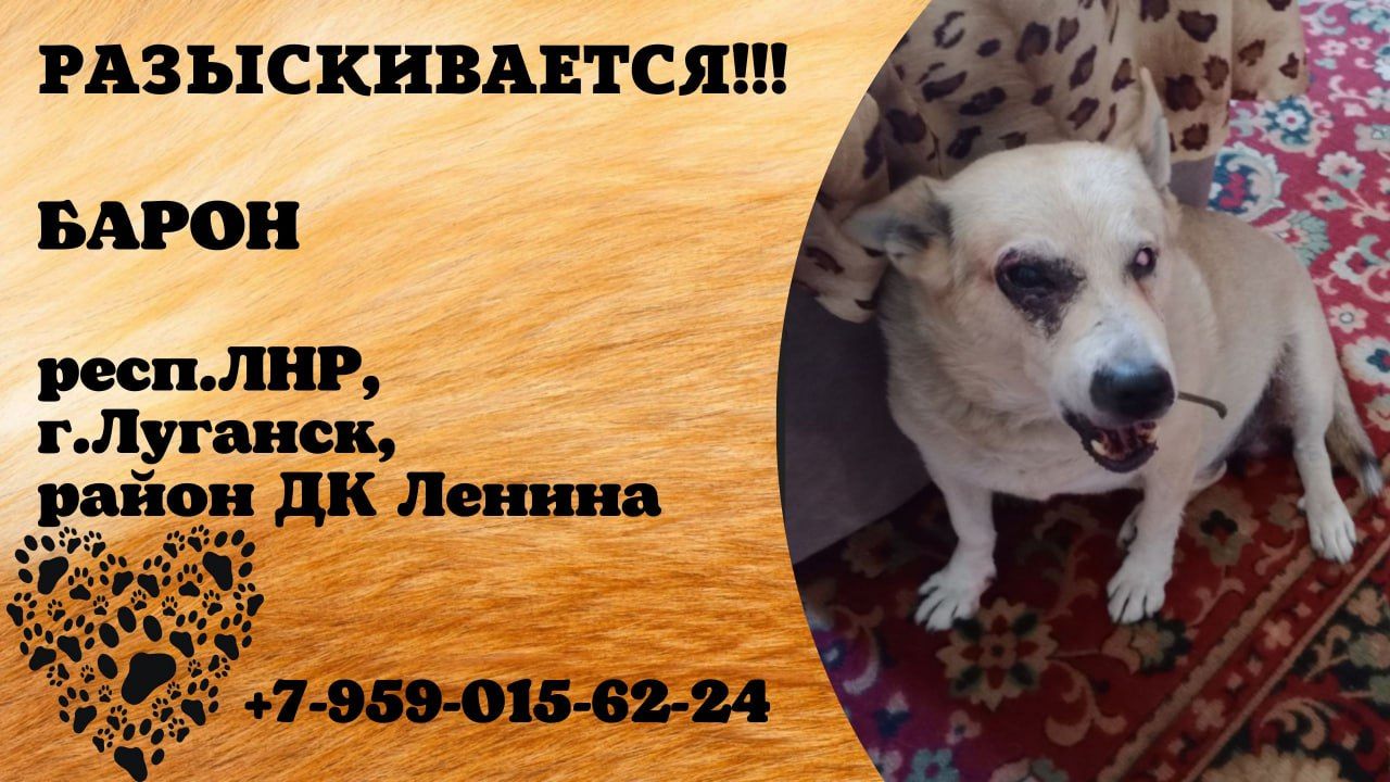 ЛНР Луганск Пропала собака 29.08.2025 г.луганск лнр Барон На левом глазу шишка,на правом нет шерсти. На нем был ошейник брезентовый темно зелёного цвета. Помогите найти, сбежала собака Луганск лнр, район ДК Ленина до машколледжа, завода ОР 29.08.2025 мальчик,на правом глазу нет шерсти,самостоятельный поиск не привел к результатам, буду очень благодарна 🙏 за вознаграждение, тел +79590156224 Автор: https://vk.ru/id135501814 Инфо: https://vk.ru/wall-198815410_215479 #пропала_собака #лнр #луганск