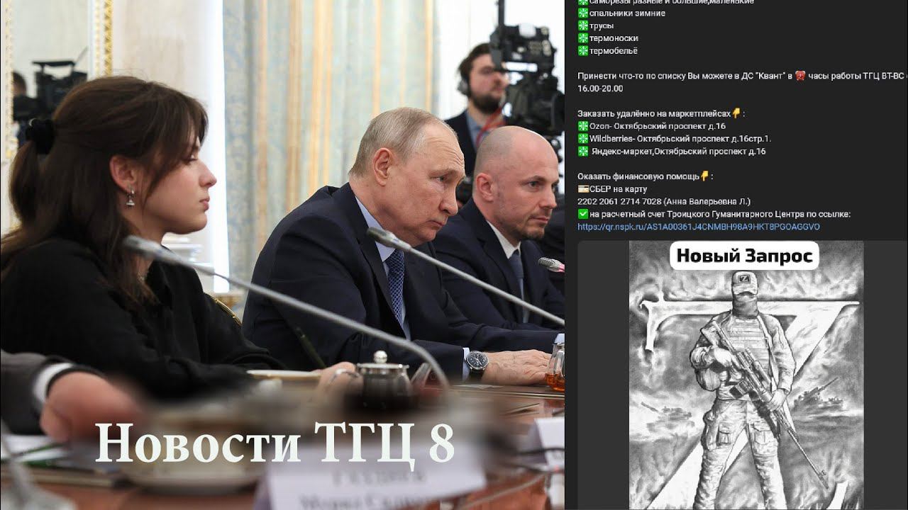канал в ТГ: https://t.me/trogumcenter группа в ВК: ТРОИЦКИЙ-ГУМАНИТАРНЫЙ-ЦЕНТР.РФ официальный сайт: https://trogum.center/ Для перевода д/с в качестве благотворительного пожертвования: 1) на р/с ТГЦ по ссылке: https://qr.nspk.ru/AS1A00361J4CNMBH98A9HKT8PGOAGGVO 2) на р/с ТГЦ по реквизитам: Наименование получателя платежа: АНО «ТГЦ» ИНН получателя платежа: 7751253833 КПП получателя платежа: 775101001 Номер р/c получателя платежа: 40703810502370000164 Наименование банка получателя платежа: АО "АЛЬФА-БАНК" БИК: 044525593 Номер к/с банка получателя платежа: 30101810200000000593 Назначение платежа: Благотворительное пожертвование. 3) на карту СберБанка: 2202 2061 2714 7028 (Анна Валерьевна Л.)