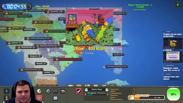 Отправить ДОНАТ Бизарычу - https://www.donationalerts.com/r/bizarre 2 Вариант Отправить ДОНАТИК - https://new.donatepay.ru/@bizarrejoy Заказать МУЗЫКУ на стрим 33р трек 5 мин - https://donatepay.ru/p/bizarrejoy Стрим на VKplay без лагов стрим - https://vkplay.live/bizarrejoy Стрим на ТВИЧЕ тут - https://www.twitch.tv/bizarejoy ТЕЛЕГРАММ канал с чатом Bizarre World - https://t.me/bizarreworld Группа в ВК - https://vk.com/bizarrejoy Ссылка на Правила, таблицу ТУРНИРА 4 сезон - https://clck.ru/3FqBpy Интерактив (ДОНАТ), играем до ТОП 3 вы можете сделать следующее: НОВИНКА Крутануть Колесо ЗАДАНИЙ куча всего интересного - 30р ЗАСЕЛИТЬ СВОЮ СТРАНУ (ТОЛЬКО 1 Страна может быть куплена) ИНТЕРАКТИВ ОБНОВЛЕН, ЛЮДЕЙ ПОКУПАТЬ НЕЛЬЗЯ: Начальное БЕЗРАБОТНЫЙ дает Кофе, без имени, места, х10 чел - 30р Обычное РАБОТЯГА дает бодрящий Кофе, х1 Мир, х15 чел - 50р Бизнесмен ТОРГАШ дает Кофе х2 мир, х30 чел - 100р Богатый ОЛИГАРХ дает Благ и Кофе, х4 мира, х60 чел - 300р Мировая ЭЛИТА дает ВСЕ Бафы, х6 мир, х100 чел - 500р Космос МАСОНЫ дает ВСЕ бафы, х10 мир, х200 чел, отдельный остров - 1000р (Бесплатно из чата селю с 3-4 жителями рандомно после интерактива) ПЕРСОНАЖИ И ГОРОДА Назвать КОРОЛЯ вашим ИМЕНЕМ (без 18+ слов, ок?) - 20р Название Деревни вашим именем (деревня в племени) - 25р Сменить НАЗВАНИЕ своей страны, без мата - 26р БИОМ любой Трава, Джунгли, Лимоны, Конфеты, Алмазы - 41р Сменить название КЛАНА (Альянса) без мата - 51р Добавление скиллов, вещей и атрибутов Королю -Дать КОРОЛЮ способность (какая доступна) (1шт) - 10р (Бессмертие, Гигант, Сила, Мудрость, Гениальность, Регенерация и т.д.) ПОЛИТИКА (передача миров теперь 2к1) Объявление МИРА или ВОЙНЫ стране (ваша страна) - 80р Объявить МИР или ВОЙНУ между чужими странами - 150р Выбрать ЭПОХУ любую на ваш выбор, будьте осторожны - 101р Развалить АЛЬЯНС с союзными странами (свой) - 130р Развалить АЛЬЯНС с союзными странами (любой чужой) - 260р СВОБОДА (до топ 10) Восстание СТРАНЫ обретает свободу (страна_Х захваченная) - 499р (до топ 6 действие, ваше поселение на карте и название+мир) ПОМОЧЬ ПОСЕЛЕНЦАМ РЕСУРСАМИ (дают баф к развитию) Дать КАМЕНЬ, ЗОЛОТО, РУДА, АДАМАНТИЙ, СЕРЕБРО, МИФРИЛ - х1шт = 1р НАВРЕДИТЬ ПОСЕЛЕНЦАМ (после перемирия 30 минутного) Наслать МАГА-ЗЛА пускает огонь на жителей x1 - 150р Наслать НЕКРОМАНТА плодит скелетов х1 - 40р Наслать ДЕМОНА сильный монстр огневой х1 - 60р Атака животных Медведи, Волки, Носороги х1 - 25р Послать злых Бандитов, Холодоков, Снеговиков х1 - 50р ЧУДЕСА ДОБРЫЕ Дать КОФЕ ( +СКОРОСТЬ) !страна! КРОМЕ ВОЙНЫ и 10м ПЕРЕМИРИЯ - 25р Послать БЛАГОСЛОВЛЕНИЕ (дает СИЛУ) !вся страна! - 100р Наложить МОЩНОСИЛ на свою провку, сила Армии! МОщный БАФ - 100р Дать деревне ДРУИДА х5 защищает жителей, реген растений - 33р Дать жителям ДОБРОГО МАГА х3 защищает от ЗЛА (кроме Орков) - 50р Чумной ДОКТОР лечил БОЛЕЗНИ и ЗОМБИ ВИРУС - 55р Божественный ШАР защита всех жителей от урона (временно) - 60р Послать ЧУДО (ЛЕЧИТ - безумие, инфекции, болезни) !вся страна! - 154р ☔ ЧУДЕСА ЗЛЫЕ (после перемирия 30 минутного) ☔ Оживить ДЕРЕВЬЯ или ДОМА вредят людям !3-ая кисть! - 80р Удар МОЛНИИ ЗЕВСА все поджигает в месте удара - 90р Послать ТОРНАДО на деревню указать, все разрушает - 100р Наложить ПРОКЛЯТЬЕ на жителей (делает СЛАБЫМИ) - 199р Поставить ОГНЕННУЮ БАШНЮ сжигает все вокруг - 120р Поставить ЛЕДЯНУЮ БАШНЮ всех замораживает - 120р Наслать СУПЕР ТЫКВА плодит тыквы и очень Агрессивна - 122р АПОКАЛИПСИС (после перемирия 30 минутного) ГРАНАТА кинуть куда либо (кроме армии врага это читерно) - 35р Отправить НЛО в деревню указать какую - 170р Наслать ЗЕМЛ