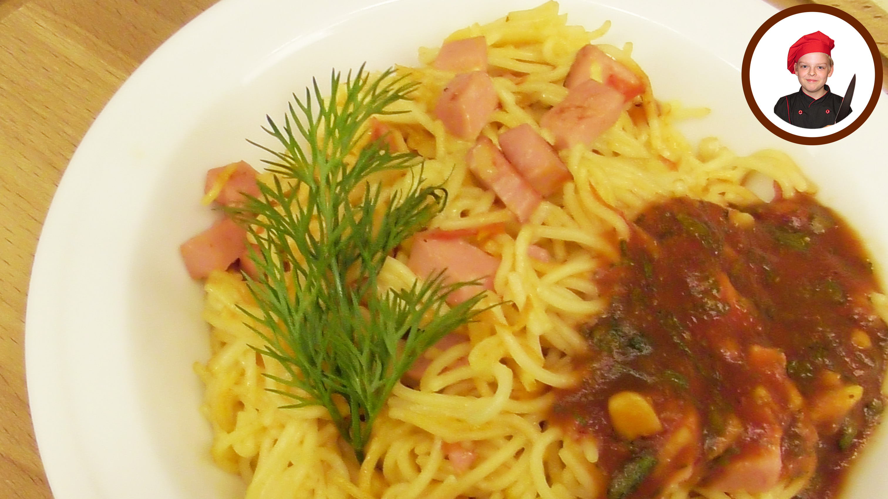 Завтрак по-итальянски: Ингредиенты на 2 порции: - Спагетти - 100 грамм - Колбаса вареная - 100 грамм - Чеснок - 1 зубчик - Помидорчик - 1 - 2 шт. - Масло сливочное - 20 грамм - Зелень для украшения - Соль, перец по вкусу #Завтрак #рецепты #Апухтин #кулинария