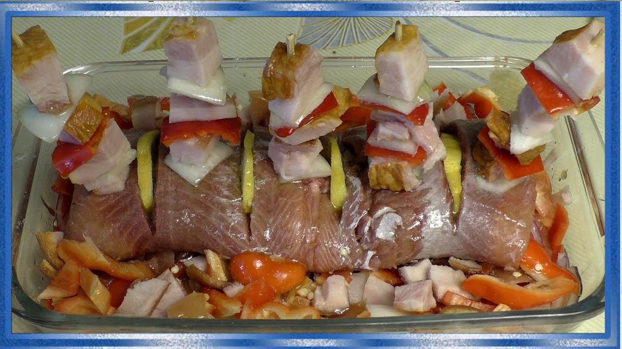 Рыба в духовке, запечённый лосось, Кета, или горбуша с Копчёным салом, Сочно и очень вкусно!