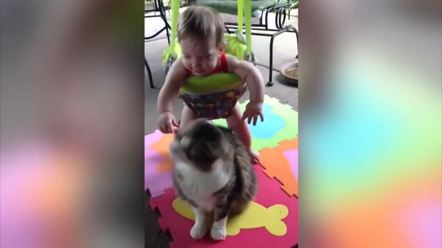 Малыш пристаёт к коту и ему нравится. Забавный кот и ребёнок