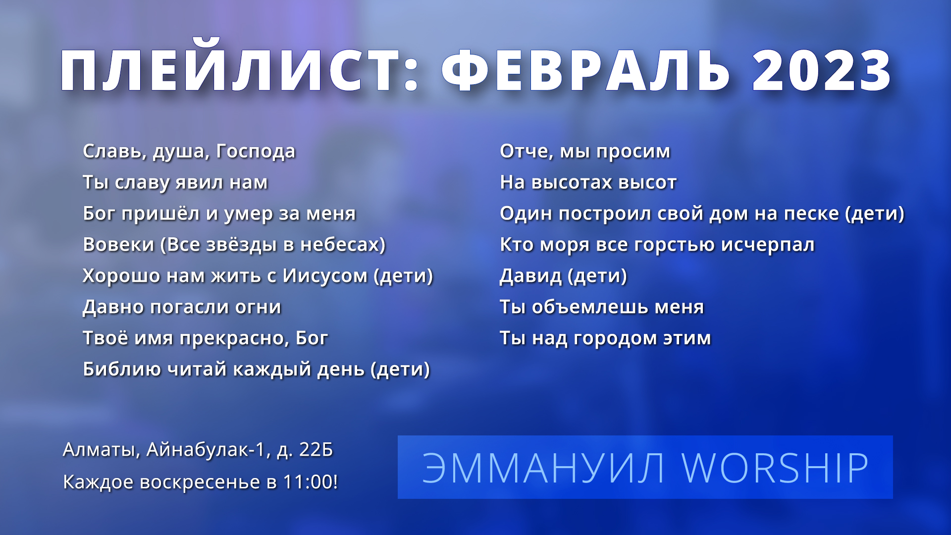 ПЛЕЙЛИСТ: Февраль 2023 — Эммануил Worship Алматы