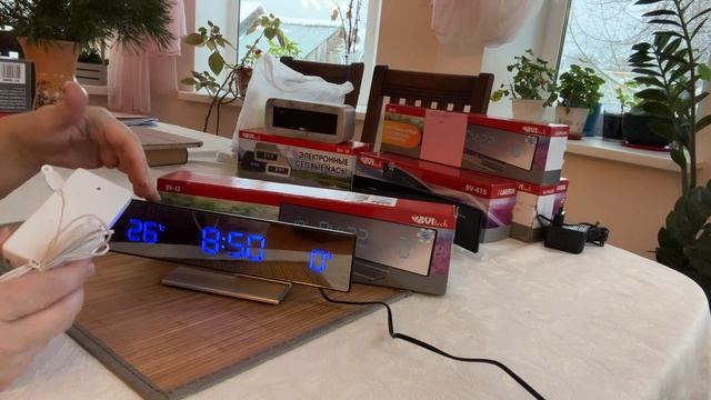Подробное описание в карточке товара на сайте www.bvitech.ru Многофункциональное устройство, Часы, будильник с функцией «Snooze», Будильник, Термометр, внутренняя и внешняя температура, Внешний датчик для температуры, Высота цифр на дисплее 23 мм (0,9”), Светодиодный дисплей, синее/красное свечение, Зеркальная поверхность, Беспроводной датчик с проводным сенсором ( 2,5 м), Сетевой ададптер АС 220В, адаптер 50Гц DC 4.5B/200mA, Резервные батареи: CR2032, Размер 2,6х4,4х8,0 см.