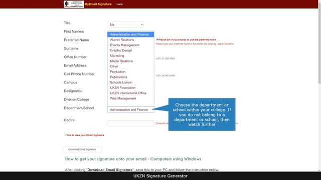 UKZN signature how to video instruction video on how to generate your Email Signature. This is the English version. ---------------------------------------------------------------------------------------- University of KwaZulu-Natal http://www.ukzn.ac.za/ UKZN Facebook page https://www.facebook.com/ukzn1 UKZN Twitter https://twitter.com/UKZN UKZN Online Newsletter http://www.ukzn.ac.za/media-publications-reports/UKZNonline