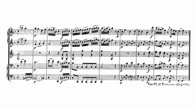 Wolfgang Amadeus Mozart: Divertimento No. 13 for 2 oboes, 2 bassoons & 2 horns in F major, K. 253 (with Score) Composed: 1776 Performance: Bläser der Berliner Philharmoniker 00:00 1. Thema mit variationen (F major) 09:25 2. Menuetto e Trio (F major - B-flat major) 12:47 3. Allegto assai (F major) Completed in August 1776, this masterful gem features pairs of oboes, horns, and bassoons, not an unusual combination for Mozart, however, since he composed five other works scored for that same instrumentation around that time (K. 213, 240, 252, 270, and 289). This Divertimento in F major is unusual, though, in other respects: cast in three movements, it opens with a set of variations (one of only three such examples of a variations movement appearing as the leadoff panel in Mozart's oeuvre), and the remaining two movements together are only about half the length of the eight-minute first. The main theme in the Andante opening panel is bright and livelier than its tempo marking would normally suggest. Oboes dominate the writing, generally sounding playful, especially in the first variation, where the tempo increases and the music takes on a more animated manner. The ensuing variation is moderately paced but busy in its wealth of detail and sunny character. The third variation is also upbeat, but quite lively, too, the oboes continuing in primary roles. The ensuing variant has a stately, almost chugging quality in its pacing, while the slow fifth variation is dreamy and lovely in its mellow scoring. The piece concludes with a chipper march-like rendition of the theme. A graceful minuet makes up the second movement, while the finale is a deliciously effervescent Allegro assai. (https://www.allmusic.com/composition/divertimento-no-13-for-2-oboes-2-horns-2-bassoons-in-f-major-k-253-mc0002358205)