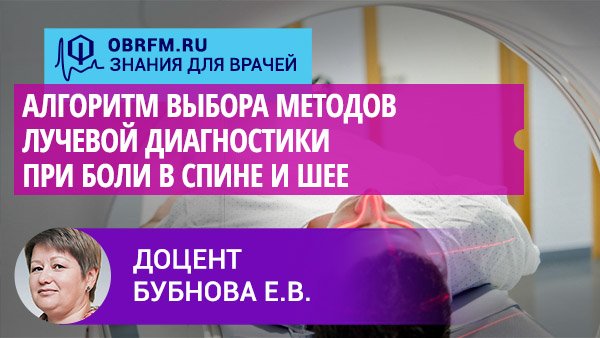 Доцент Бубнова Е.В.: Алгоритм выбора методов лучевой диагностики при боли в спине и шее