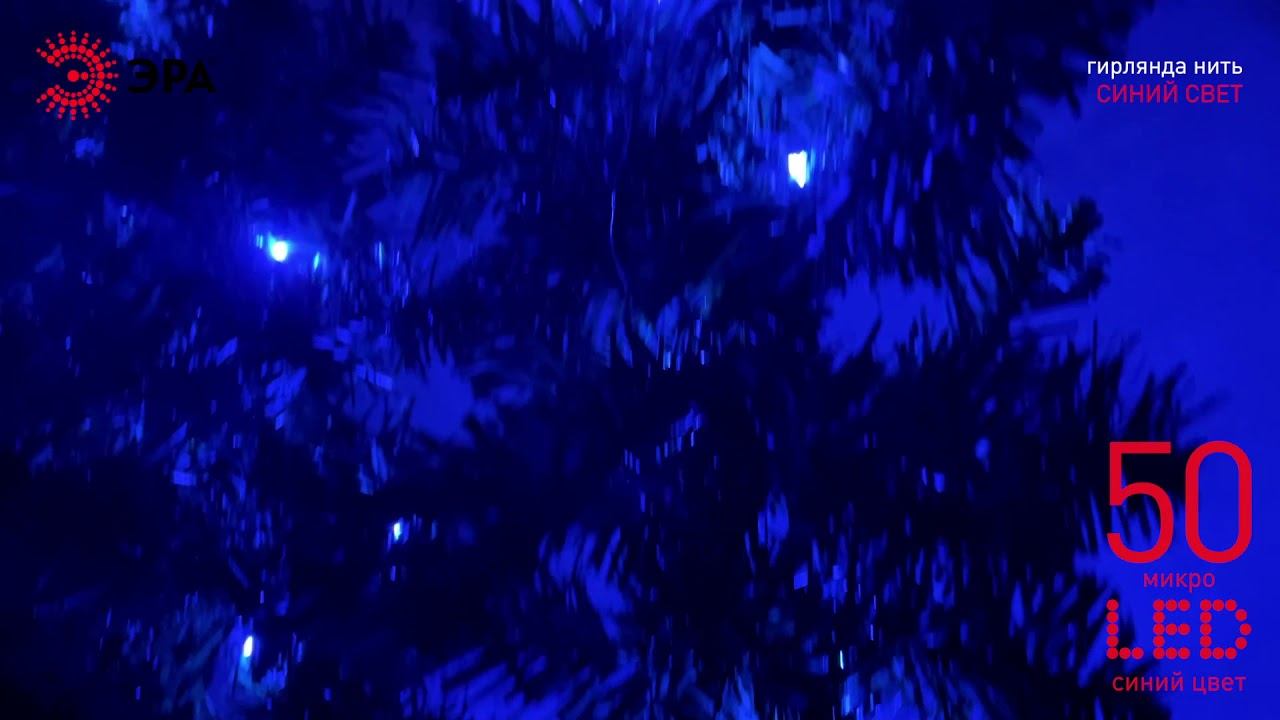 Новогодняя гирлянда ЭРА с microLED-лампами "Нить" ENIN-5NB синий свет 5 м, на батарейках