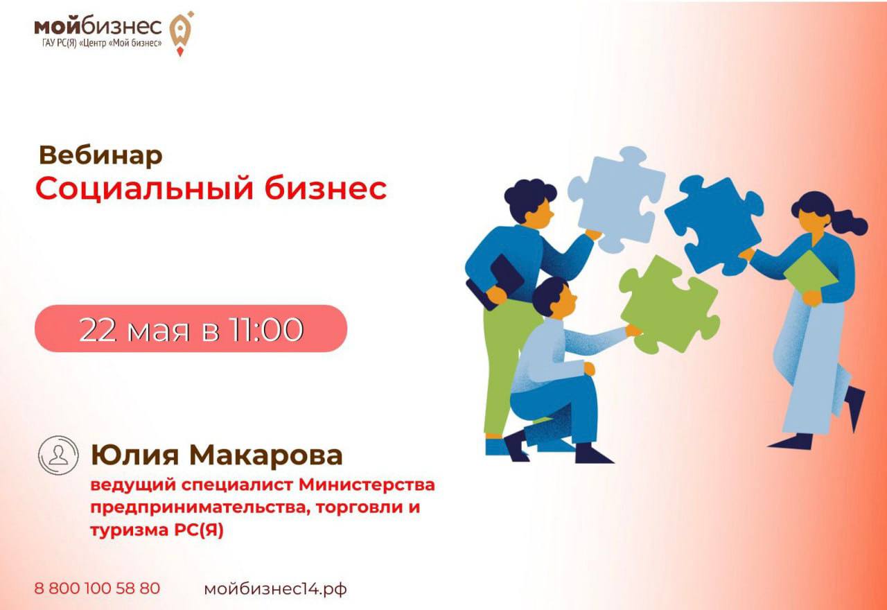 ✔️На вебинаре участники узнали, что такое социальный бизнес и в чем его особенности, а также ознакомились с основными современными направлениями социального предпринимательства. 📃В программе: 1. Введение о понятии «Социальное предпринимательство»; 2. Сроки, порядок и инструкции по заполнению заявки на получение статуса «социальный предприниматель»; 3. Информация о текущих и запланированных мерах поддержки; 4. Ответы на вопросы. 🎙Спикер: Юлия Макарова, ведущий специалист Министерства предпринимательства, торговли и туризма РС(Я)