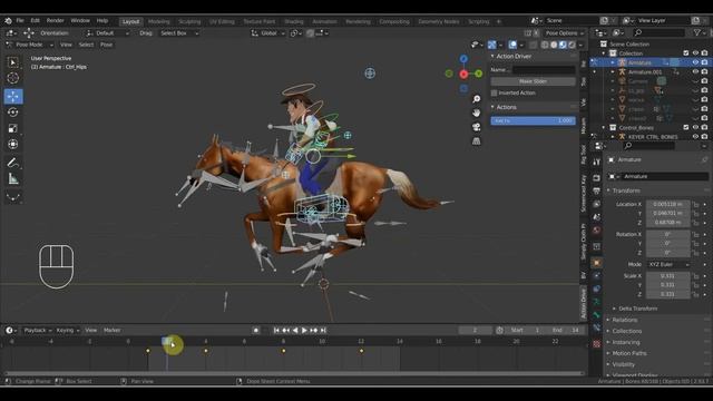 BLENDER 2.91 Пробую совместить анимацию Лошади с персонажем ковбоем.mp4
