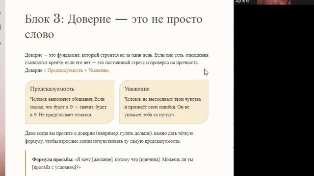 Было по‑настоящему интересно: • обсудили особенности отношений со взрослыми; • разобрали тему личных границ; • освоили ключевые принципы выстраивания здоровых отношений. Наш тгк: https://t.me/Openyourheart_tome