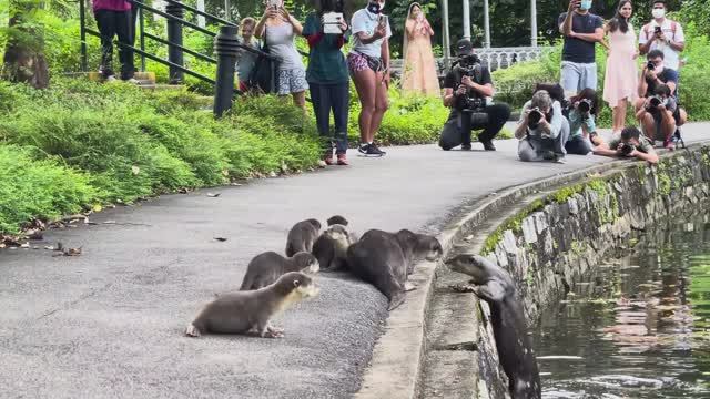 Дикие детёныши выдры получили свой первый урок плавания