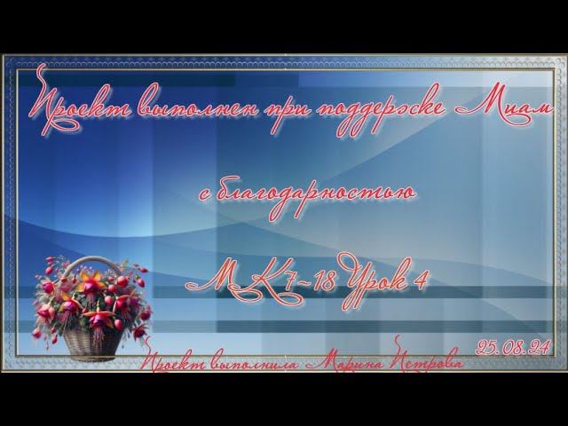 Урок выполнен при поддержке МИАМ с благодарностью! Приветствую и благодарю посетителей моего канала. Желаю приятных просмотров! Все права на публикуемые материалы принадлежат их владельцам и взяты из открытых источников сети Интернет. Я благодарна авторам за возможность их использования в своей работе.