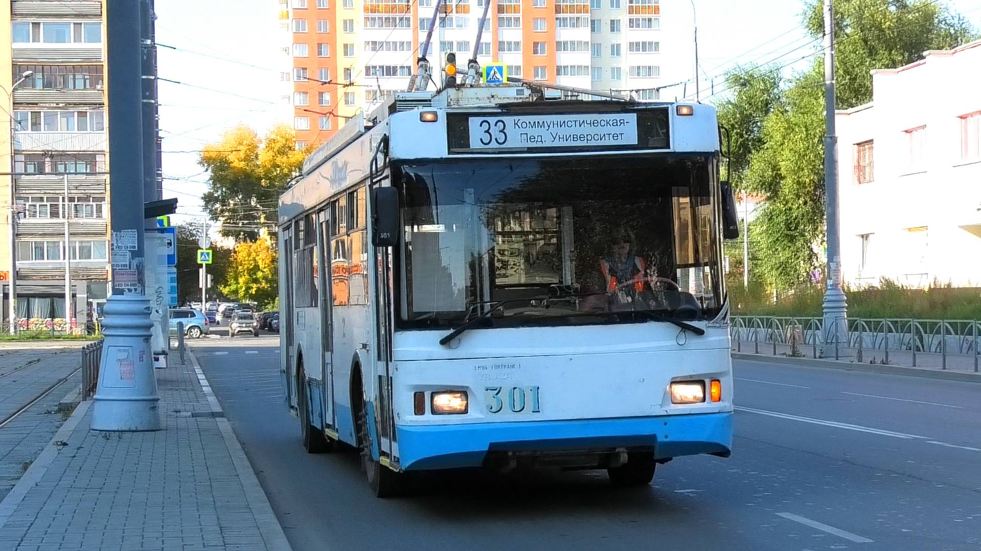 Троллейбус Тролза-5275.07 «Оптима» борт. №301 маршрут №33 "Коммунистическая - Педуниверситет" следует через остановку "Старых Большевиков". Город Екатеринбург, Россия. Приписка: Орджоникидзевское троллейбусное депо. 21.09.2023