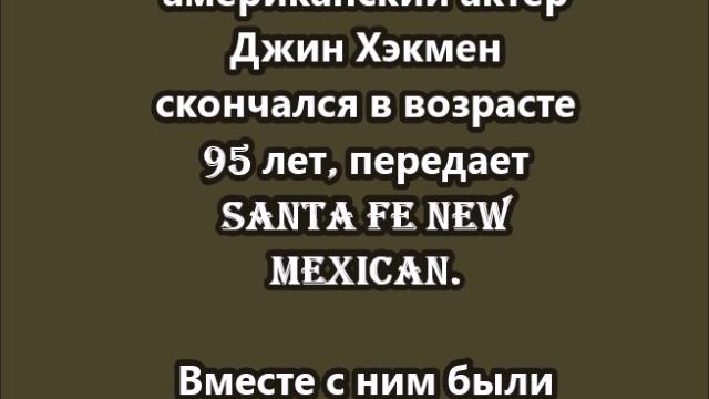 американский актер Джин Хэкмен скончался в возрасте 95 лет