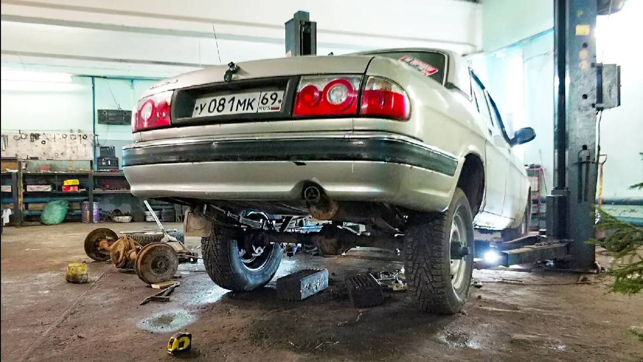 Конструируем внедорожник из Волги 31105, в данном выпуске установим военный мост и добъёмся увеличение дорожного просвета по заднему бамперу на 50 сантиметров. Так же самая низкая точка заднего моста составит 30 сантиметров. Установим 30-е колёса от УАЗ Патриот. Пока на шоссейных покрышках. Особую ценность в данном автомобиле представляет импортный двигатель компании Chrysler.