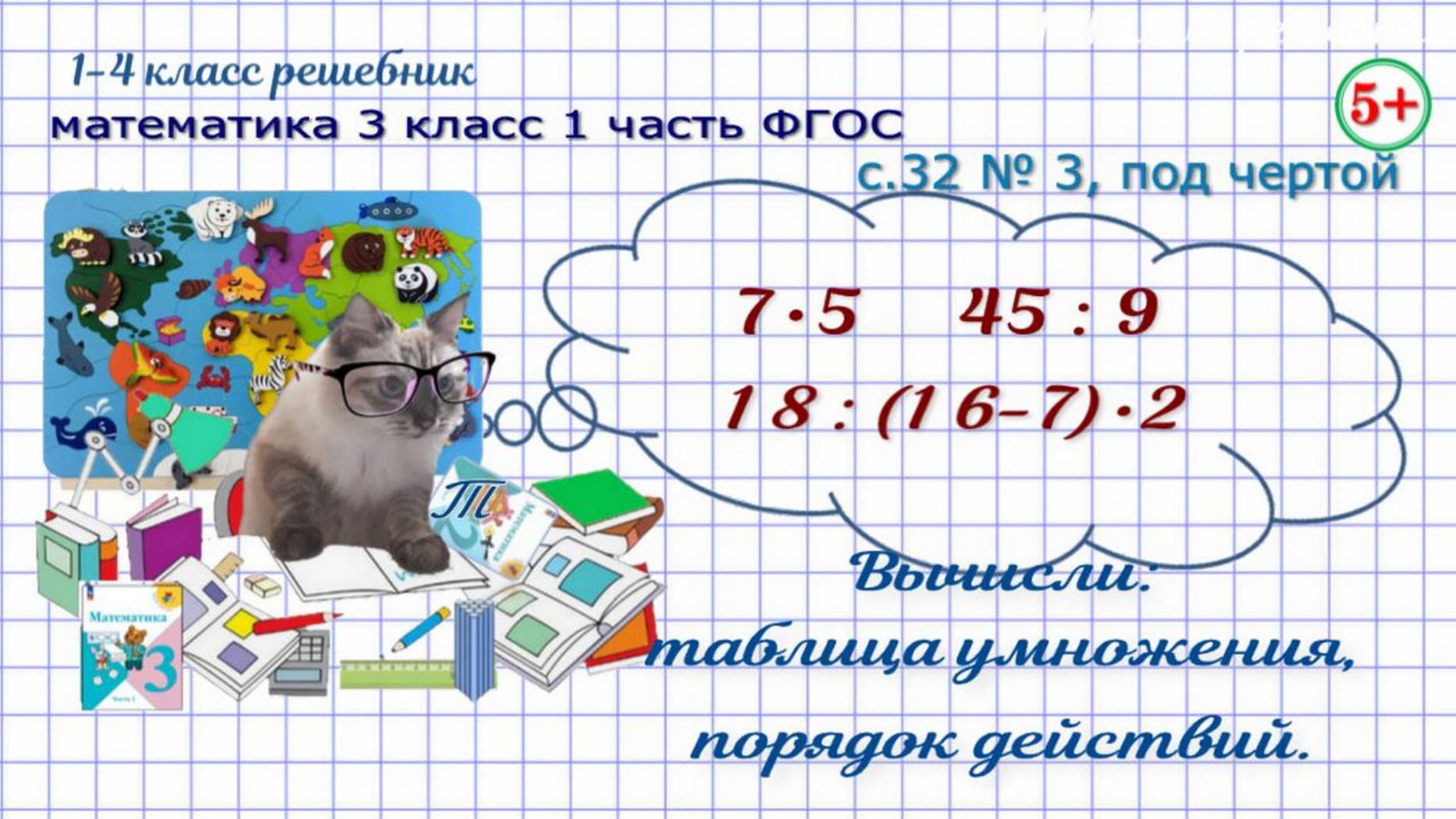 Стр. 32 № 3, под чертой таблица умножения на 5, порядок действий математика 3 класс 1 часть ФГОС