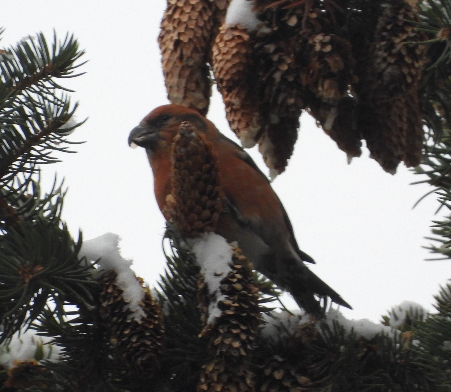 Клёст-Еловик, самец, наблюдение птиц в Великом Новгороде, 29 октября 2023